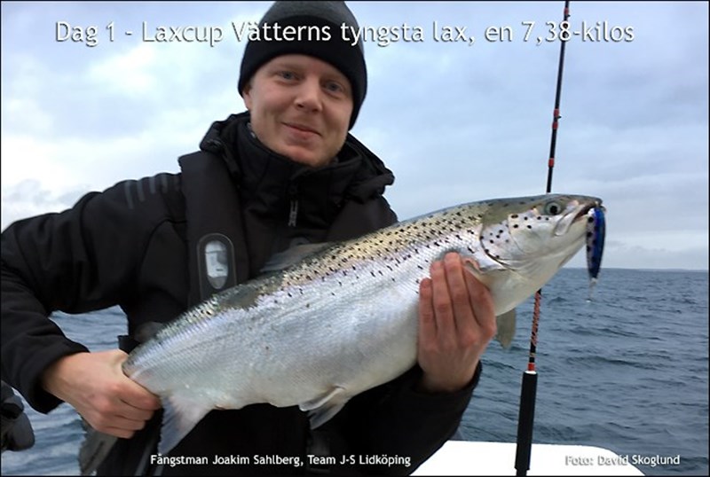fångades av Joakim Sahlberg från Team J-S. Laxen vägde 7 380 gram och gav ett pris på hela 7 380 kr sponsrat av Colorama i Tibro.